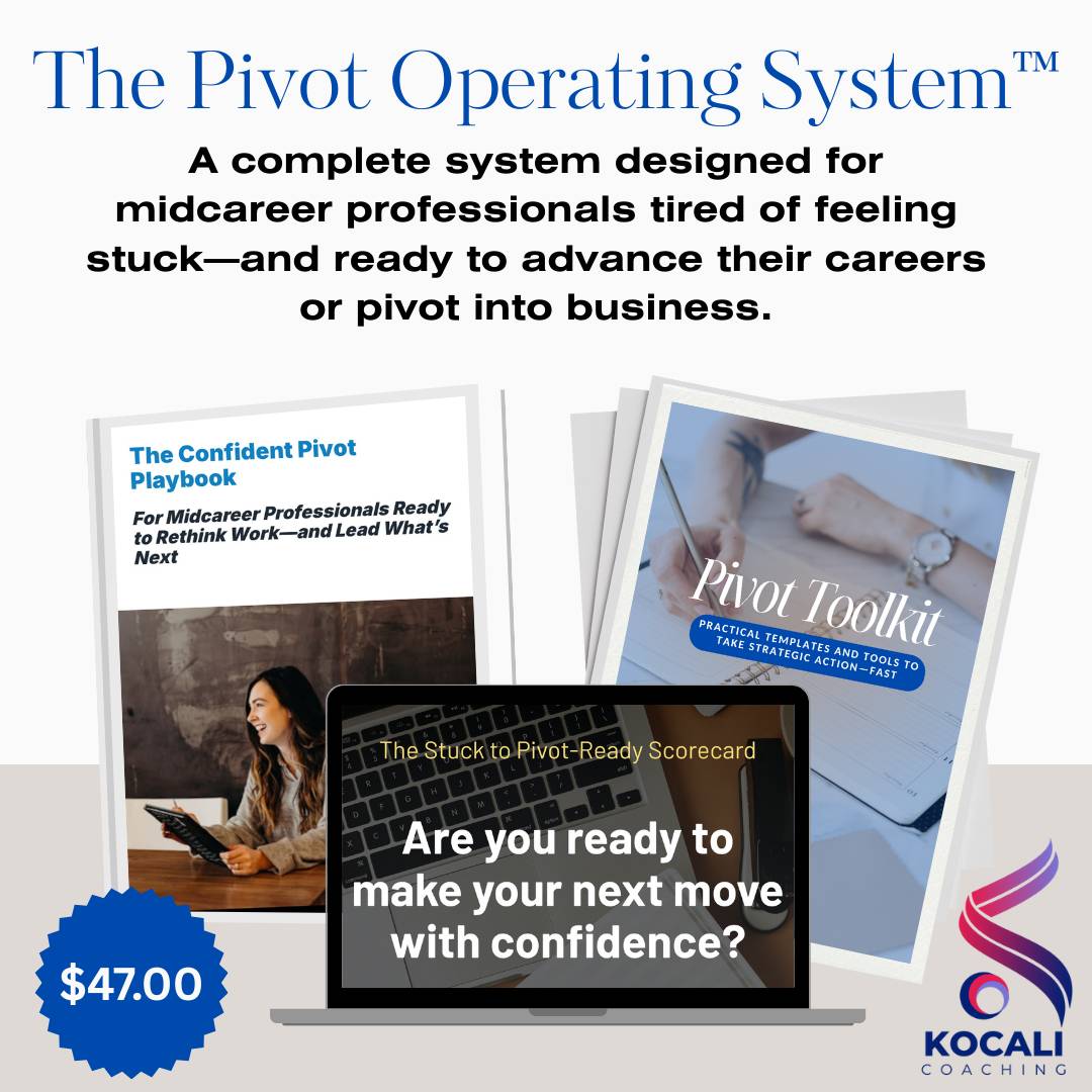 The Pivot Operating System™ is a strategic clarity kit that helps midcareer professionals break through confusion and build momentum toward their next chapter.